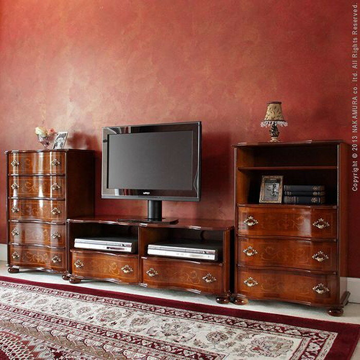 引き出しの前板にはイタリア伝統の職人技である象嵌細工が施されています。